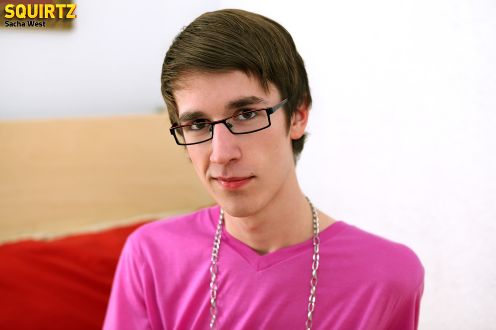 Skinny boy Sacha West touching his cock through pants